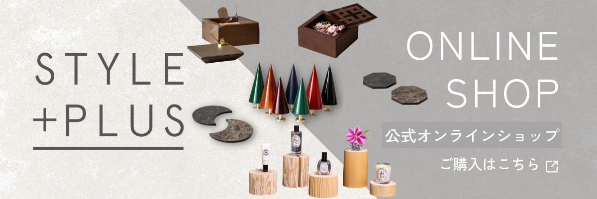 素材に伝統・技術・人が融合し、STYLE+PLUSの商品は製作されております。生活や空間に彩りや心地よさを感じていただけるものをお届けしたいと考えております。ショールームでは、STYLE+PLUSの世界観を感じていただけるよう天井格子・格子・キッチン・テーブル・什器など、ほとんどのものが商品と同様の素材を使わせていただいております。